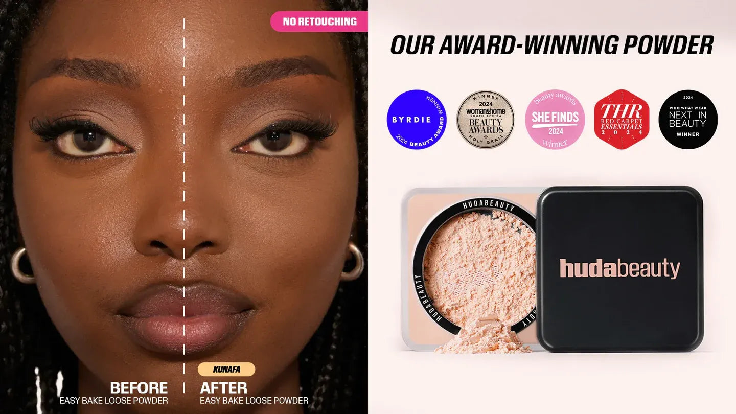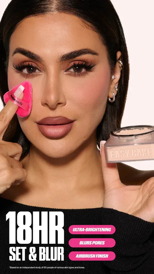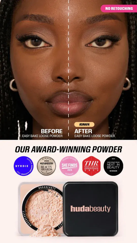 The Huda Beauty Easy Bake Loose Powders are inspired by Huda’s strong belief that the technique of baking is a key step to a flawless finish while ensuring long-lasting, melt-proof makeup. This extremely light and silky texture blends seamlessly into the skin leaving it matte with a hint of sheen, for a luminous finish that controls shine throughout the day. The powders work to subtly color correct and highlight different contours of the face, leaving a translucent veil of color on your skin.
