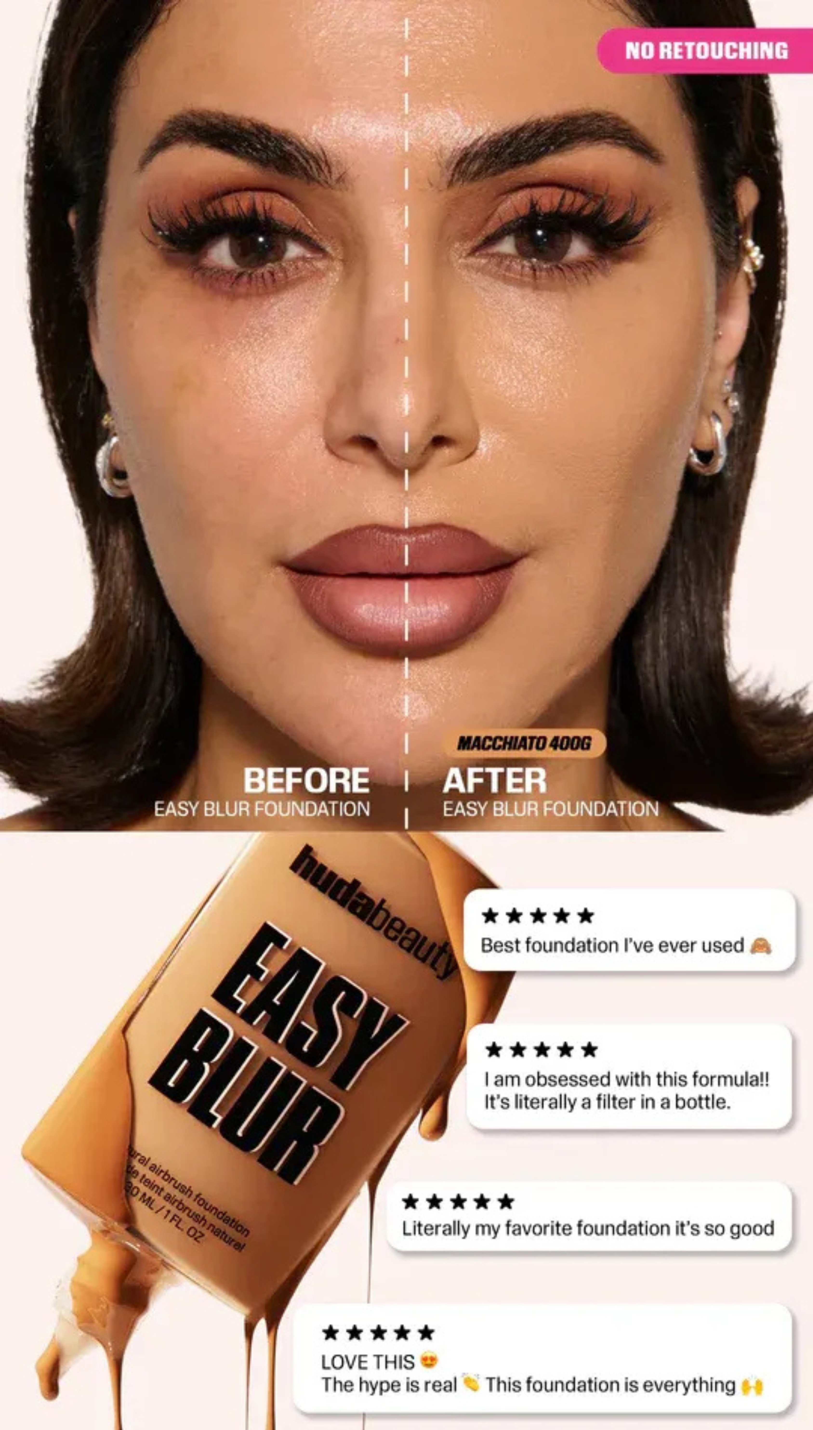 This is not a filter! Our Easy Blur Foundation is a weightless, real-life filter foundation that’s ultra-blurring and smoothing for an easy airbrushed finish. With medium-to-buildable coverage for foolproof, seamless, easy application.